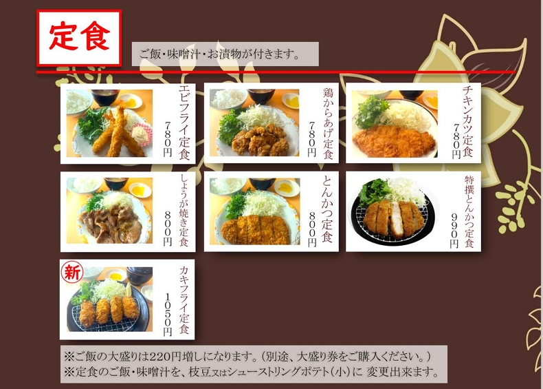 からあげ定食・麺類など¥780~とリーズナブル