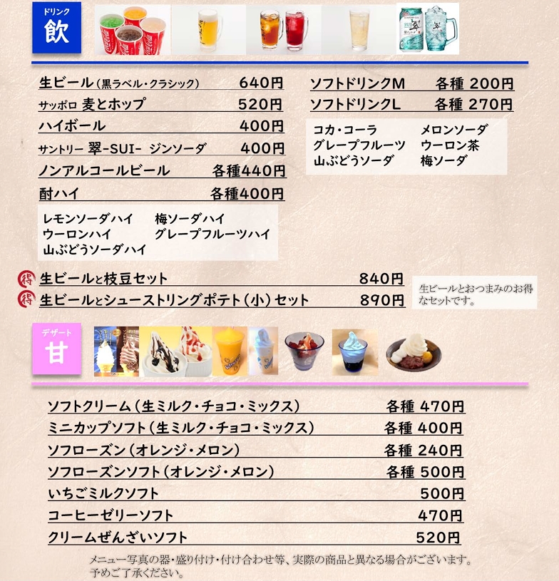 ビール・ソフトクリームは高めかなぁ